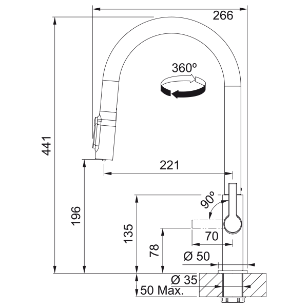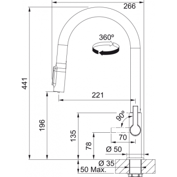 Zastosowanie wyciąganej wylewki w kształcie litery "J" pozwala na zwiększenie zasięgu baterii. Wyciągana wylewka to doskonałe rozwiązanie nie tylko do dużych zlewozmywaków.